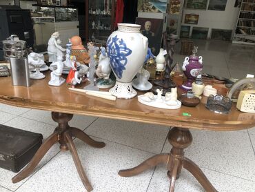İki oyma ayaqlı böyük oval masa. 80-ci illərin klassik dizaynı, möhkəm konstruksiya və gözəl taxta teksturası. İnteryer, qalereya, salon və ya ofis üçün uyğundur.