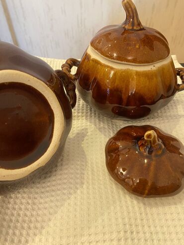 QəhvəyiSaxsı qablar.Yeni,həcmi 700ml