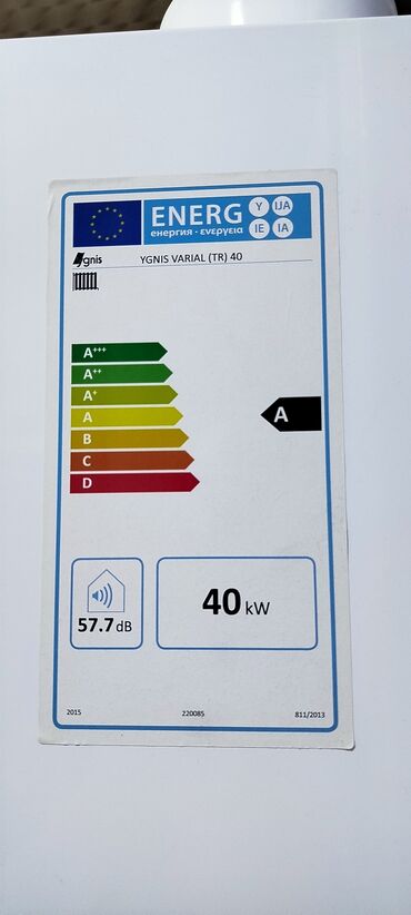 Qeyd: Şəkillərdə sərgidə iki ədəd divar tipli qazan və enerji etiketi göstərilib. Enerji sinfi A, güc 40 kW və səs səviyyəsi 57.7 dB məlumatları istehsalçı etiketindən götürülüb.