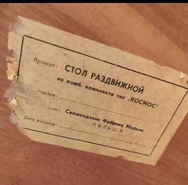 Çatdırılma yoxdurSovet istehsalı olan, açılıb-yığılan taxta stol. Kosmos mebel dəstinə aiddir. Kiçik məkanlar üçün əla seçimdir, qonaq gələndə böyüdülə bilər