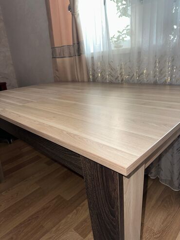 - Dizayn: Açıq ağac tonlu üst səth və tünd qəhvəyi ayaqlar/çərçivə ilə kontrastlı, müasir üslub.