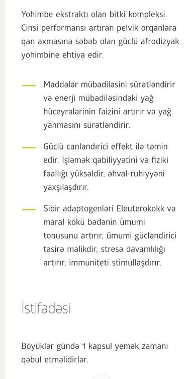 Yohimbe ekstraktı olan bitki kompleksi. Cinsi performansı artıran
