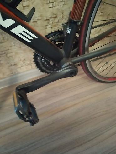 - Krank və pedallar: yol tipli krank cütü, platforma/klipli pedallar