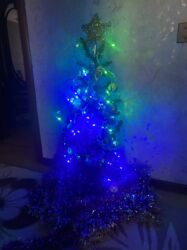 - Ağac üzərində rəngarəng LED işıqlar: mavi, yaşıl və çoxrəngli parıltı effektləri; naqillə şəbəkəyə qoşulur. Ayrıca ayrıca fotoşəkildə göstərilən idarəetmə bloklu LED qirlyanda daxildir.