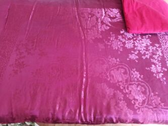 Qırmızı rəngli, əl tikişli, naxışlı yorğan Yenidir, heç bir dəfə də istifadə olunmayıb. İki nəfərlikdi taxt yorğanıdır.