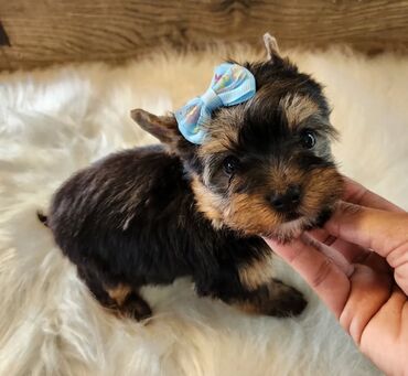 Mikro Yorkshire Terrier balası 1 erkek 1 dişi bala var 52 ginlükdüler, 400 qram çekileri var, pasport var max çekileri 1.5-2 kq, standart mini ile sehv salmayın, isteyen istediyi yerde aparıb yoxlatdıra biler, qurd dermanı vitamin verilib, real alıcıya cuzi endirim olacaq. İsteyen wp yazar video ataram