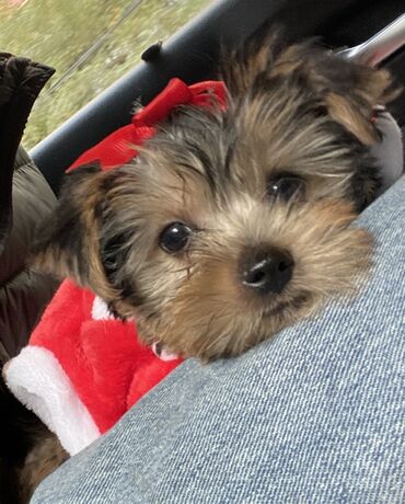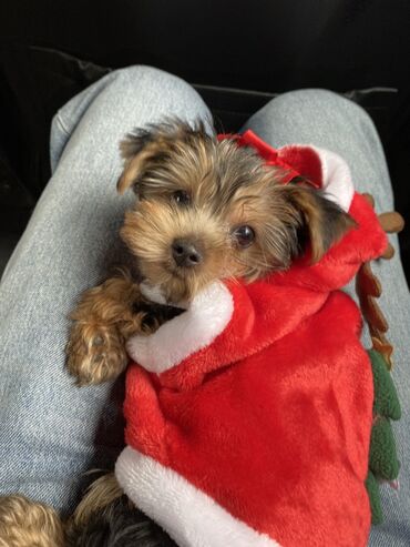 Cins: Yorkshire Terrier (Yorkie) balası Təsvir: - Miniatür, kompakt bədən quruluşu, qısa pəncələr və dik qulaqlar - Parlaq qara-qızılı rəngdə ipək kimi tüklər - İfadəli böyük qara gözlər, qara bur...