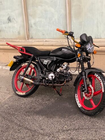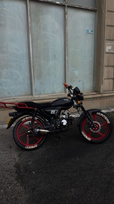 Moped/motosiklet – Titan M50 (50cc kateqoriyası) Xüsusiyyətlər: - Həcmi: 50cc sinifli benzin mühərriki (karbüratorlu) - Sürətlər qutusu: ayaqla keçidli, mexaniki - Rəng: mavi kuzov, sarı detallı (...