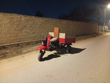 Yük daşıma üçün üçtəkərli motosiklet (trisikl) razılaşmaq olar - Rəng: qırmızı - Ön hissə skuter tipli, arxa hissə yük platformalı - Korpusda metal bortlar, arxa tərəfdə qapaxlı yük kuzovu - Ön tək...