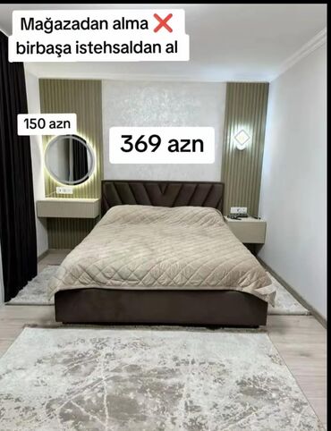 - Qiymət etiketləri şəkillərdə: 280 AZN, 369 AZN; tualet masası kimi aksessuar üçün 150 AZN qeyd olunub.