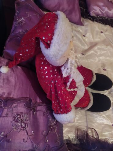 - Rəng: klassik qırmızı kostyum, ağ tük effektli haşiyələr, qara yumşaq çəkmələr