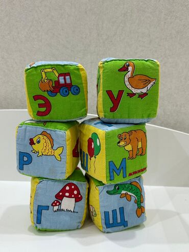 Yumuşaq kubikler,parçadandı,6 ədəd,her hissesi sekillidi ve herifler yazılıb,rus herifleri ile qeyd olunub,korpe ve məktəbə qeder uşağlar üçündür,oyredicidir