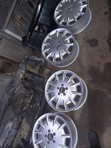 Məhsul: yüngül lehimli disk cütü - Model: 5 çıxışlı (5-spoke) hamar səthli, parlaq gümüş rəng - Ölçü: təxmini 17–18" (şəkillərə əsasən), 5 boltlu - Mərkəz hissəsində loqo emblemi - Material: alümi...