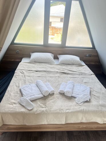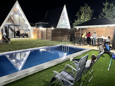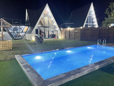 Şəkidə marxal 5 dəq məsafədə dağ mənzərəli 3 otaqdan ibarət 7 nəfərin tam rahat dincələ biləcəyi Aframe evlər