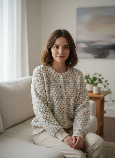 Ağ rəngli qadın sviteri çiyindən aşağı düşən ideal formada
