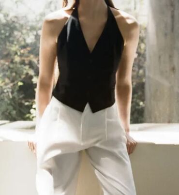 Зара жилет с открытой спиной. М размер, но хорошо сядет на S. Не надевался, этикетка на месте. 30 азн