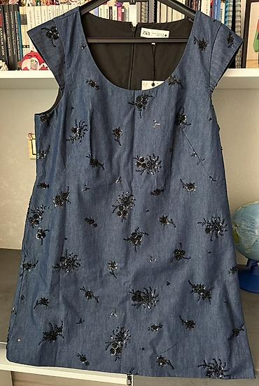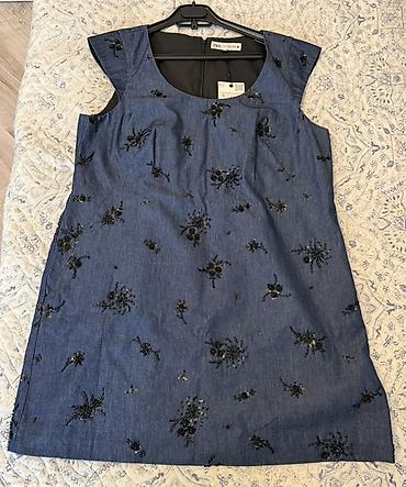 Tünd göy rəngdə zərif qadın paltarı. Ölçüsü 42 dir. Az geyinilib. Yaxşı vəziyyətdədir, zədəsi yoxdur. - Dizayn: Sadə, düz kəsim; qısa qol; dairəvi yaxa. - Bəzəklər: Yaxa...