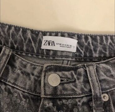 Zara qadın cinsi. - Rəng: tünd-boz/solğun yuma effekti - Model: straight/klassik düz kəsim, yüksək belli - Material: denim (pambıq əsaslı) - Ön tərəfdə düymə və fermuar bağlanma - Aşağı hissədə xa...