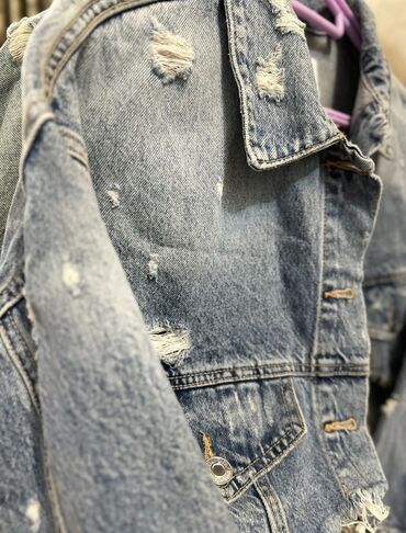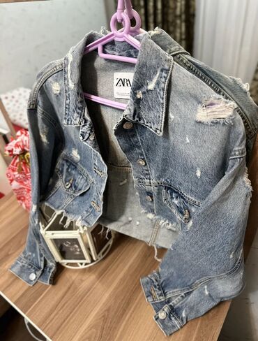 ZARA qadın cins gödəkçəsi - Model: qısa (cropped) denim gödəkçə - Rəng: açıq/orta mavi yuyulma (washed denim) - Dizayn: intentional cırıq və qaşınmış effektlər, əski kənarlar - Bağlanma: metal çıt...Giriş•Qeydiyyat