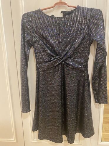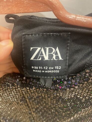 ZARA uşaq donu - Ölçü: 9 yaş / 134 sm (etiketdə göstərilib) - Model: Qısaqol, dairəvi yaxalı, arxadan düyməli (açıq kəsiklə) - Uzunluq: Dizə yaxın A-kəsim siluet - Parça və dizayn: Qara əsas fon ü...