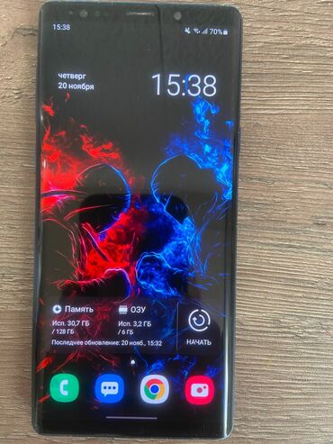 Samsung Galaxy Note 9 Flaqman telefondur pubg 60-70 fps Kamera sony istehsalidir 4k 60 fps chekir Original Super Amoled Ekran leke qeti yoxdur 128/6 yaddash Bluetooth qelemi var telefonu uzaqda...