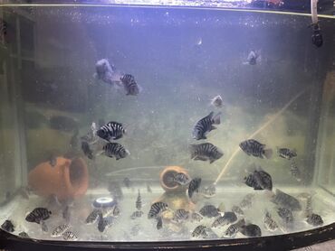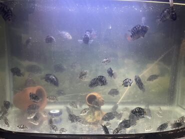 Şəkillərdə çoxsaylı sağlam balalar görünür; dekorativ gil qablar və gizlənmə yerləri kimi mühitə uyğunlaşırlar. Akvariumunuza canlanma və maraqlı davranış əlavə edən, asan uyğunlaşan cichlid balaları.