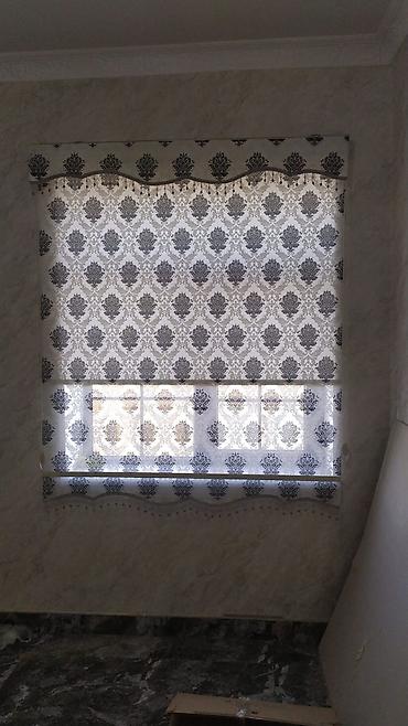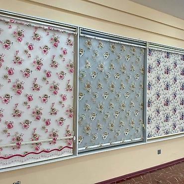 - Çiçək naxışlı dekorativ rulon pərdələr (ağ, boz və krem fonlarda müxtəlif güllü təsvirlər)