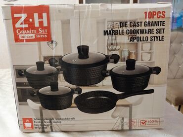 Z•H Granite Set – Die-Cast 10 parçalı mərmər/qlanit qab dəsti (Apollo Style) Tərkibi: - 20 sm qazan (kasserol) – qapaqlı - 24 sm qazan (kasserol) – qapaqlı - 28 sm qazan (kasserol) – qapaqlı - 32 ...