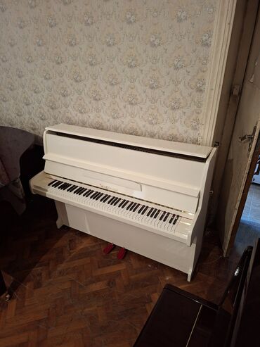 Belarus marka akustik pianino – klassik vertikal model. - Korpus: parlaq ağ lak örtük, qızılı dekor xəttləri və ornamentli şamdan tutacaqları ilə elegant dizayn - Klaviatura: 88 klaviş (tam ölçülü)...