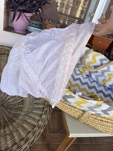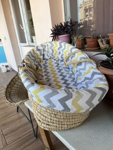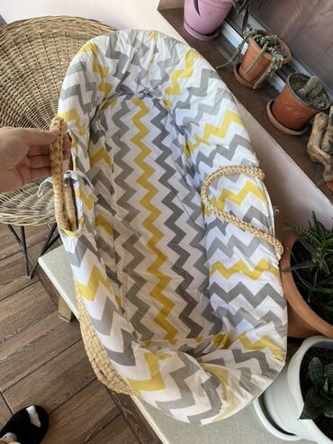 Körpələr üçün nəzərdə tutulmuş, toxunma materialdan hazırlanmış səbət. içərisində sarı, boz və ağ rənglərdə ziqzaq naxışlı yumşaq parça layneri var. Rahat daşınma üçün hörülmüş tutacaqları mövcuddur. Həmçinin çəhrayı rəngdə nöqtəli əlavə layner də mövcuddur. Bu səbət körpənizin rahat yuxusu üçün ideal seçimdir və asanlıqla bir yerdən başqa yerə daşına bilər.