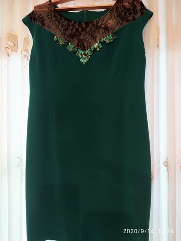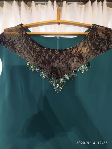 Tünd yaşıl rəngdə elegant qadın paltarı. Cəmi 1 dəfə geynilib. Yenidən fərqi yoxdu. Razmer: 42 bədən , XL