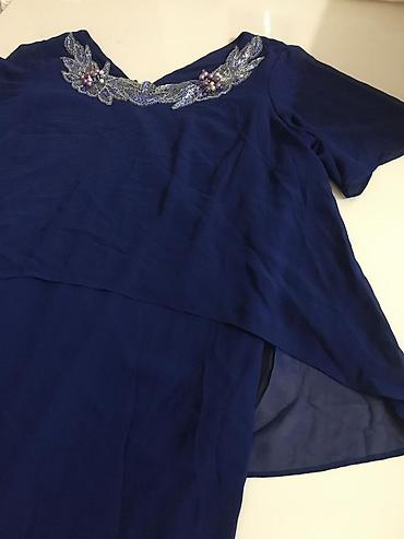 Brend: Idol Ölçü: L Qısaqol, dəyirmi yaxalı qadın paltarı. Yumşaq, parıltılı məxmər toxumalı parça. Üzərində metalik rəngli xırda daş və pailletten ibarət dekorativ naxışlar var; naqişli element...