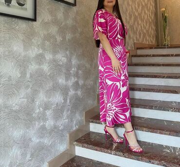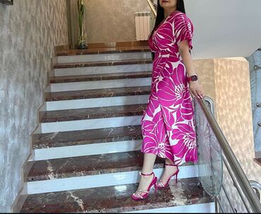 Cemi 1defe toya geyinilib .Mauve/çəhrayı-bənövşəyi tonlarda zərif axıcı ziyafət/libas. - Parça: yüngül şifon qatlar, alt hissədə bol və dalğalı görünüş. - Üst hissə: V-formalı dekolte, qatlamal...