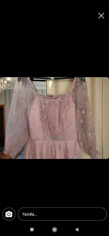 2ci əl ziyafət geyimi. Yeni kimidi az geynilib. Zərif gecə/libas – pudra-çəhrayı tonlarda, A-kəsim, uzun ətəkli. - Material: şəffaf tül üzərində bəzəkli parça, incə payet və muncuq işləmələri ...