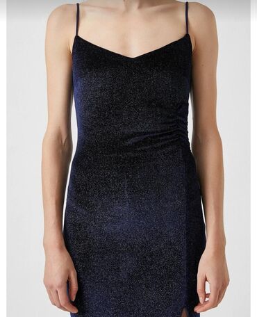 Zara don S ölçü qara mini don - Dizayn: Asimmetrik kəsimli mini model, yan hissədə böyük düyün detali və uzun sallanan parça ilə vurğulanmış. Dikiş xətləri boyunca kontrast tikiş bəzəyi. - Yaxa və...