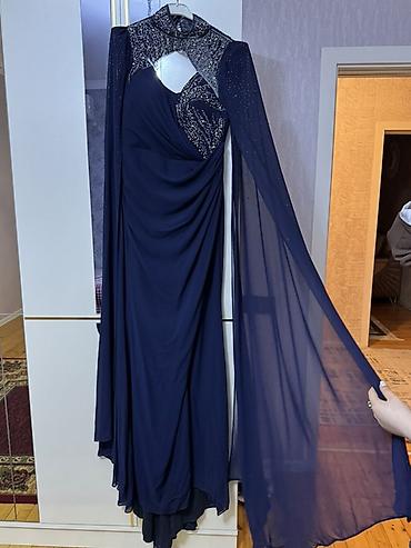 Bənövşəyi rəngdə zərif gecə/libas - Model: Uzun ziyafət donu, A-kəsim ətək - Parça: Axıcı, parıltılı atlas effekti olan əsas parça; üst hissə və qol hissələri şəffaf tül üzərində xırda daş və munc...