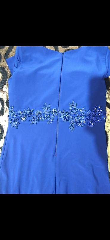 Zərif bədən forması verən bel detalları və asimmetrik pliseləri ilə eleqant görünüş yaradır. Klassik mavi tonu və zərgər işi bəzəkləri sayəsində gecə tədbirləri üçün ideal seçimdir.