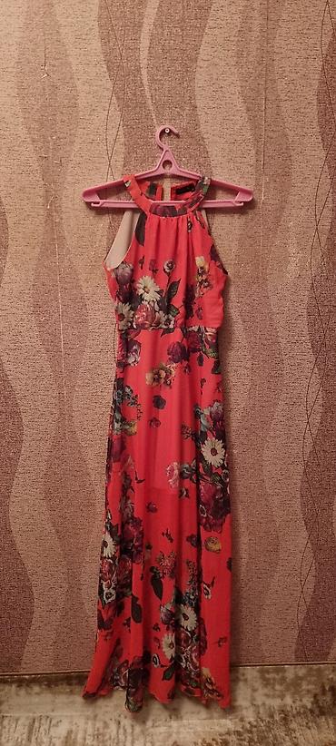 4) Qırmızı çiçək naxışlı maxi paltar
