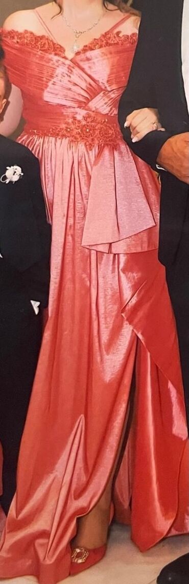 Salam, ziyafət geyimidir. 300 azn almışam. Bir dəfə geyinmişəm. Quru təmizləmədə Yuyulub təmiz vəziyyətdə veriləcək.Təzə kimidir.Qiyməti sonu 150 azn.Yarığı gizli zamokladır.Çox rahat və göstərişli paltardır.Razmeri 38 bedəndir. Rəngi nar çiçəyi rəngdədir. Zehmet olmazsa fikirləşib dəqiq almaq istəyən əlaqə saxlasın. inanən bu qiymətə belə paltar tapmaq olmaz.Sadəcə ölçüm böyüdüyü üçün məcburam satım.
