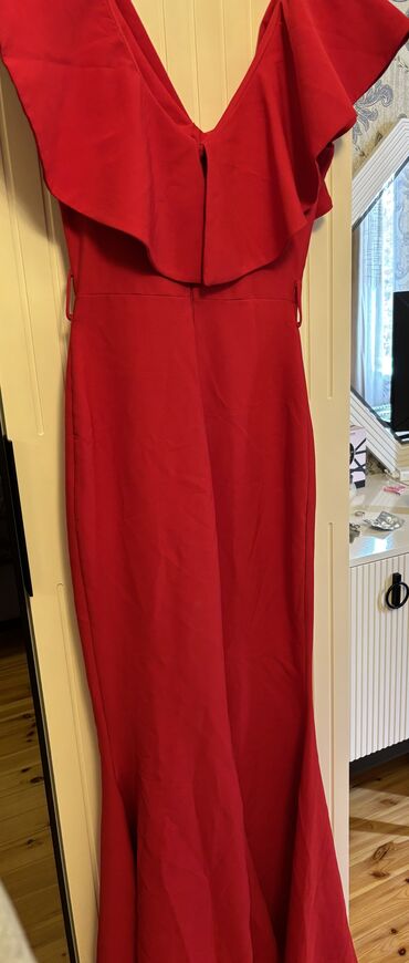 Qırmızı gecə geyimi – zərif, uzun, yan dəliyi olan model -250 azn alinib -70 azn satilir -2defe geyinilib