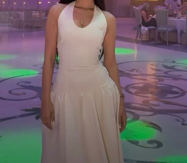 Ağ rəngli uzun ziyafət/libas Yenidir kirayəsidə mövcuddur - Material: atlas effekti verən parlaq, axıcı parça - Model: halter tipli yuxarı hissə, sinədə yüngül drapirovka - Bel hissəsi: yanlarda qa...