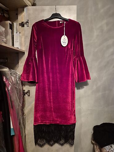 Qırmızı məxməri qadın paltarı - Parça: yumşaq, parlaq məxmər - Rəng