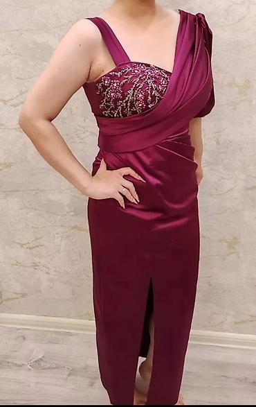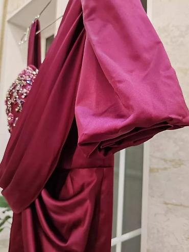 Ayşe Melek tasarım ziyafət/libas(1-2 dəfə geyilib) - Model: uzun, qapalı tərzdə ziyafət donu - Rəng: bənövşəyi tonlarda iki material kombinasiyası - Detallar: sağ tərəfdə və sinənin bir hissəsində ...
