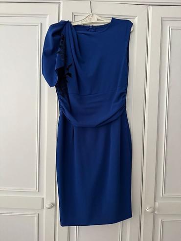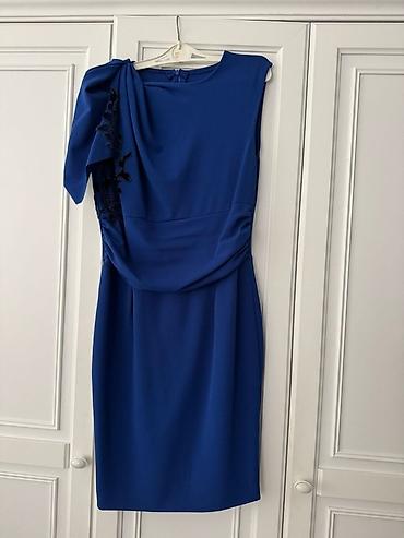 Elektrik-mavi rəngdə zərif qadın paltarı.