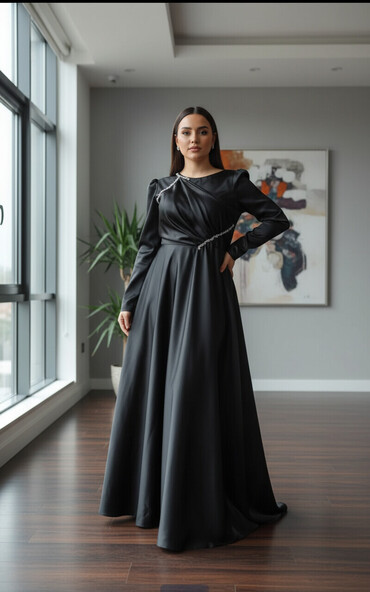 Qara rəngli uzun ziyafət/libas – xüsusi dizayn M və L ölçü - Bədənə