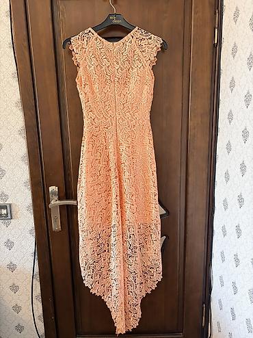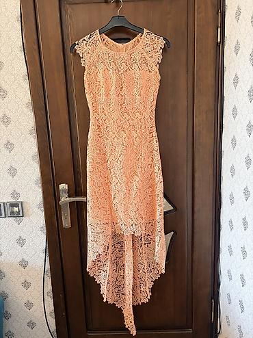Çox zərif və zövqlü dizayna malik, açıq şaftalı rəngli krujeva ziyafət paltarı. Cəmi 1 dəfə geyinilib, ideal vəziyyətdədir – heç bir qüsuru yoxdur.
