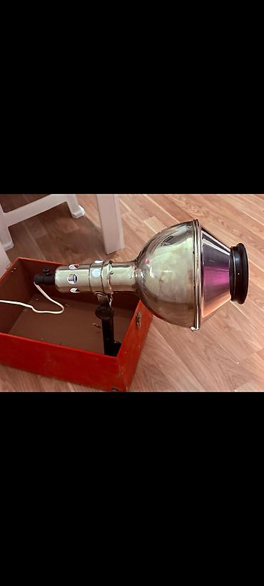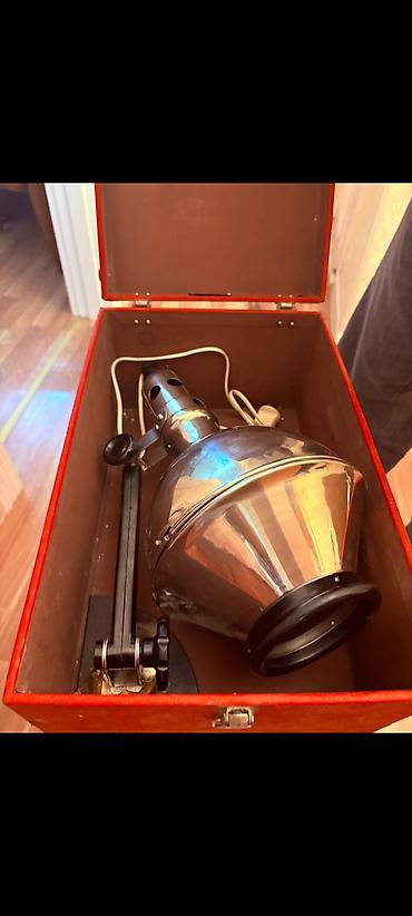 Fizioterapiya müalicəvi /ultrabənövşəyi şüa lampası (stasionar oturacaqlı), orijinal taxta rəngli (qırmızı) çamadan-korpusda.