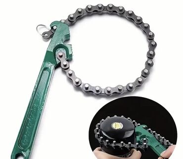 Komplekt: 1 ədəd zəncirli boru açarı (yaşıl tutacaq, metal zəncir).