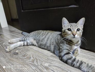 Ev pişiyi – zolaqlı (tabby) rəngdə, qısa tüklü. Xüsusiyyətlər: - Aktiv və oynaq temperament - İnsanla ünsiyyəti sevən, mehriban - Qum qabına öyrəşdirilə bilən - Qida baxımından quru və yaş yemə uy...
