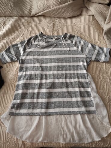 Koton markalı, boz və ağ zolaqlı, qısaqol bluz. Aşağı hissəsi ağ rəngli, yüngül parçadan hazırlanmışdır. Gündəlik geyim üçün rahat və praktik seçimdir.